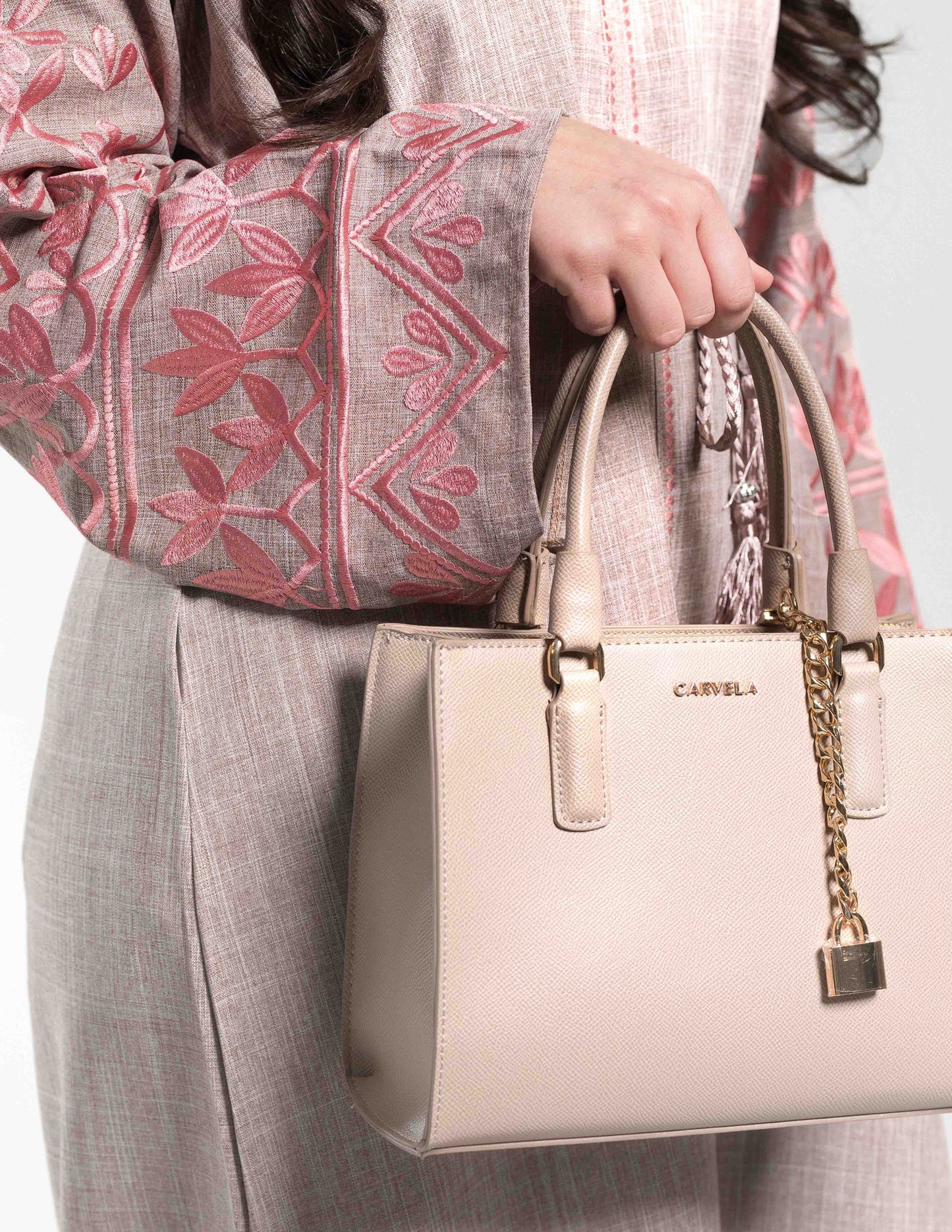 Pink Linen 'Ayma' Abaya with Sleeve Embroidery