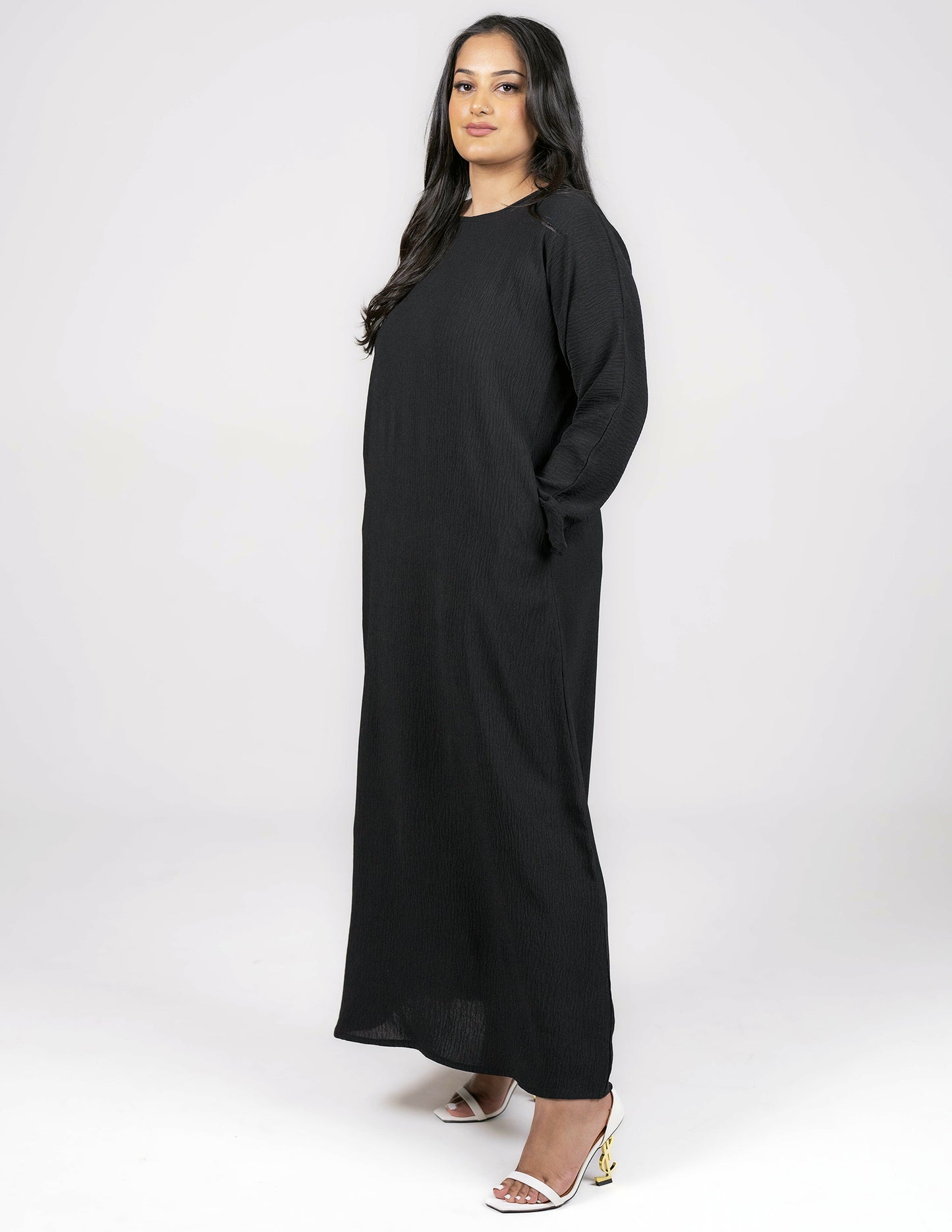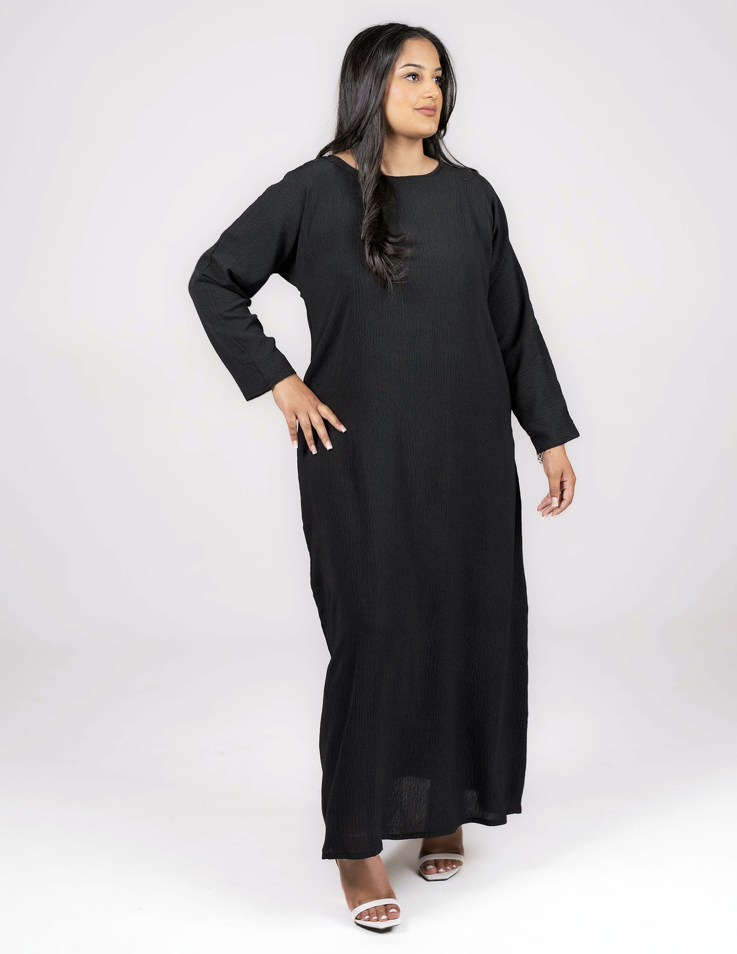 Cut in a modest style, this full length slip dress with pockets either side can be worn under any abaya outer or indeed as a standalone dress. Created in a high quality CY material (linen and polyester blend) giving a light touch, soft feel, and crepe like appearance up close with just enough flexibility to provide comfort and style alike. The dress is perfect for summer, and sure to be a great wardrobe staple.