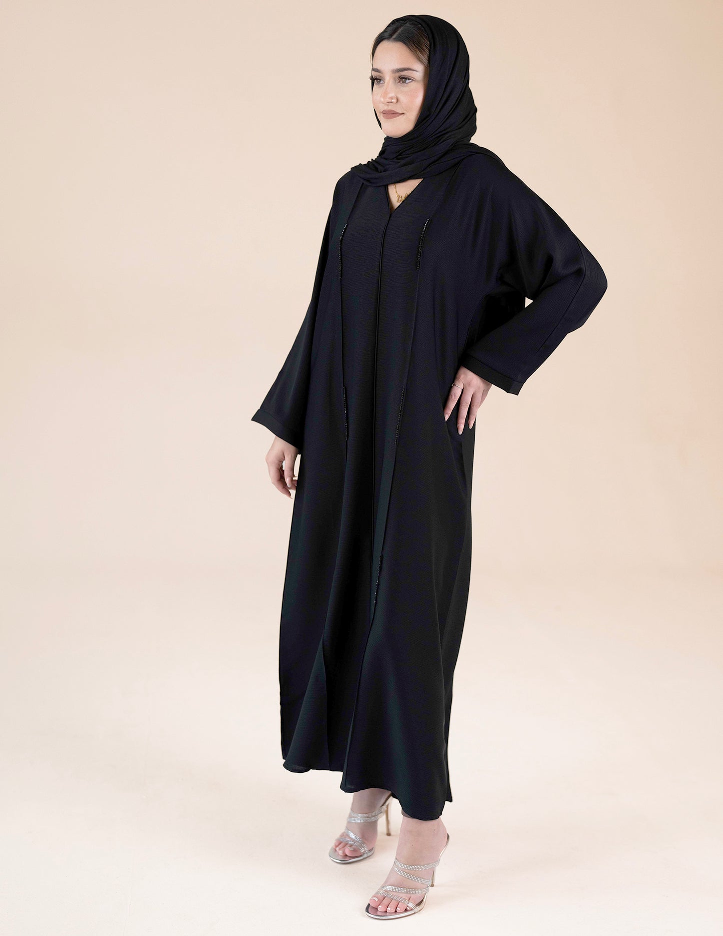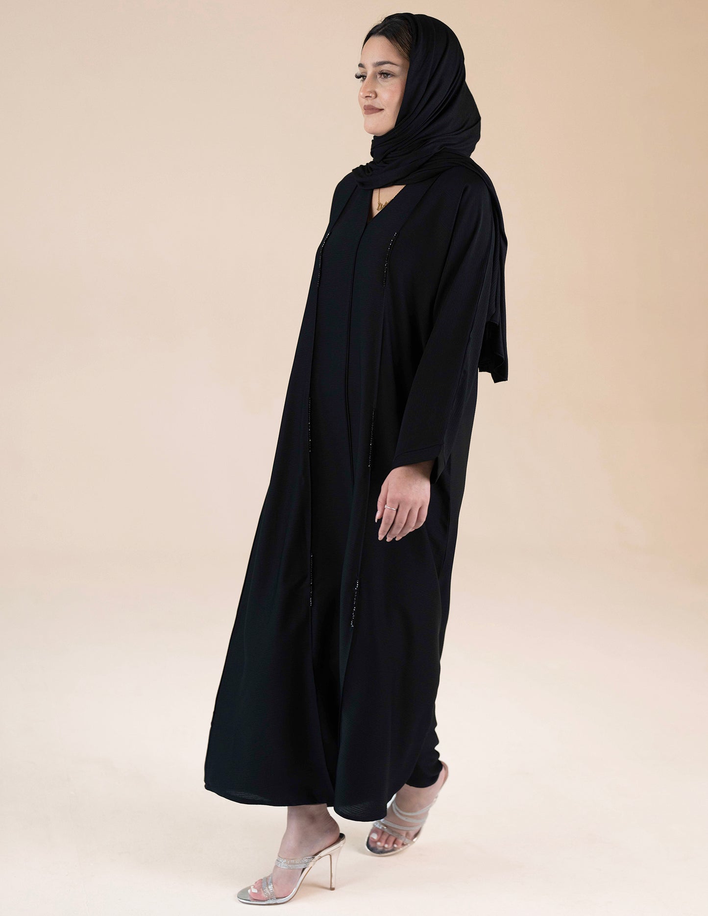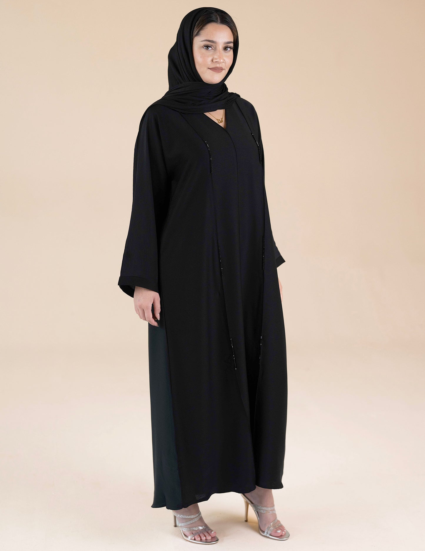 Closed Abaya with Black Diamante Detail - Black