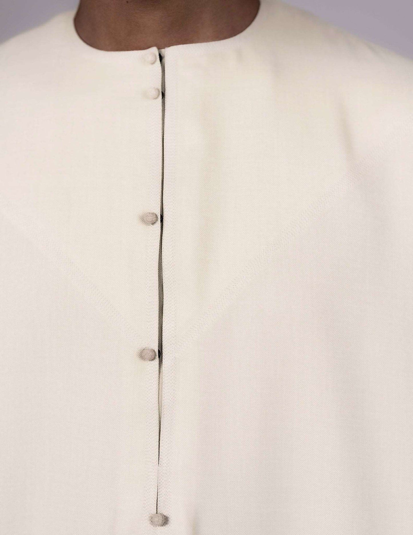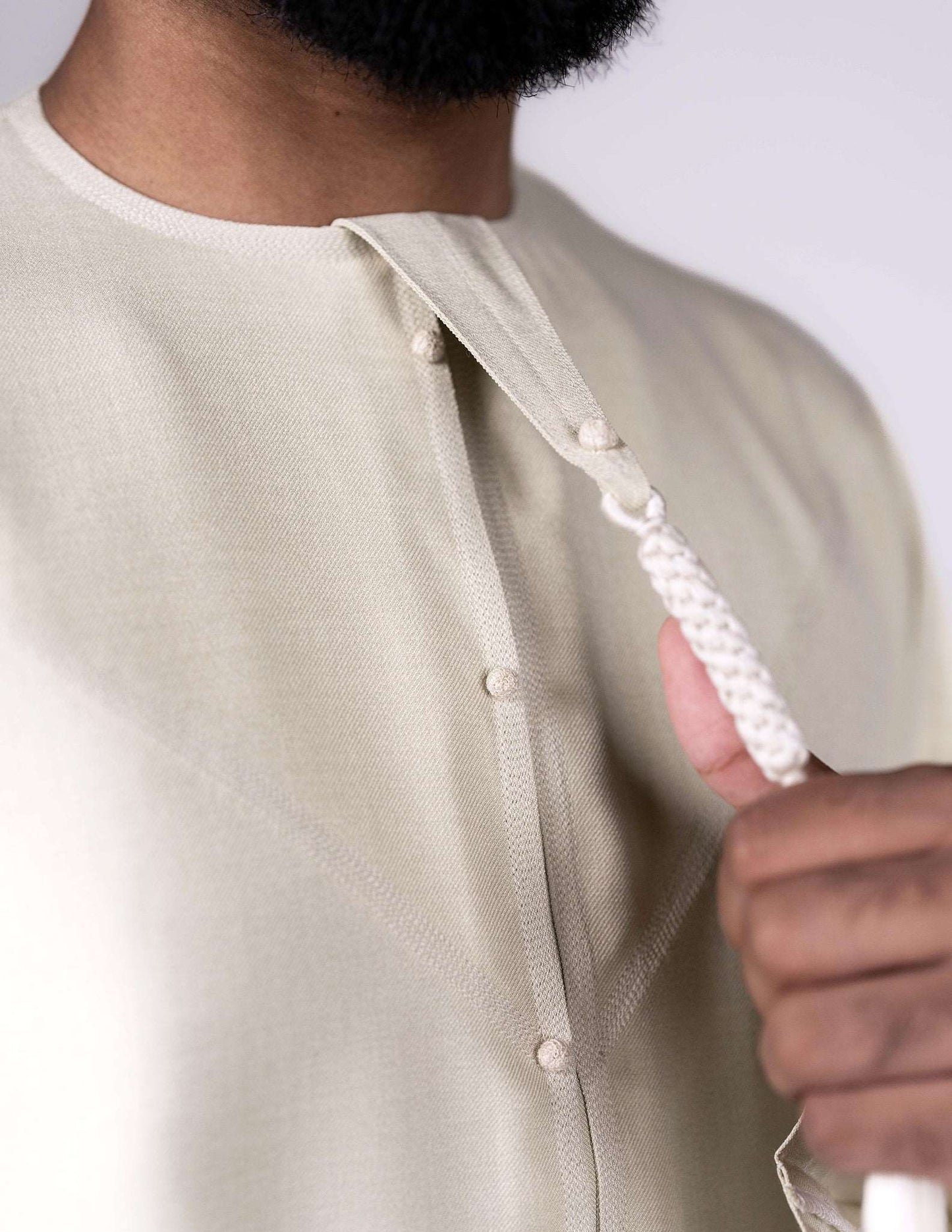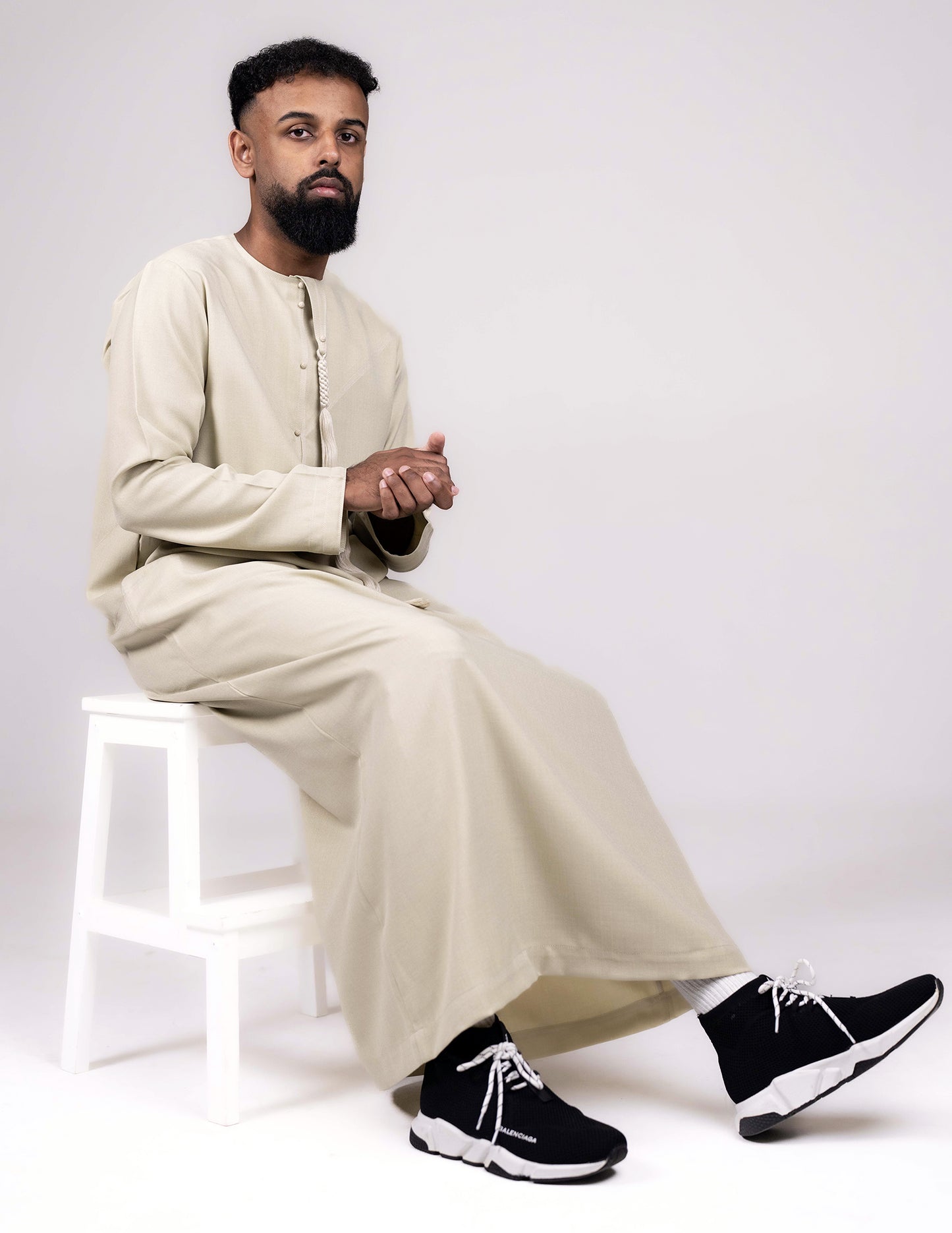 Cream Emirati thobe in a High grade mélange twill fabric, not available on the average high street store for thobes. The mens range has been worth the wait, and is finally here crafted in a quality that is unparalleled. High quality craftsmanship on the stitching and the detailing enhances the premium grade twill fabric, providing true comfort, style and class.