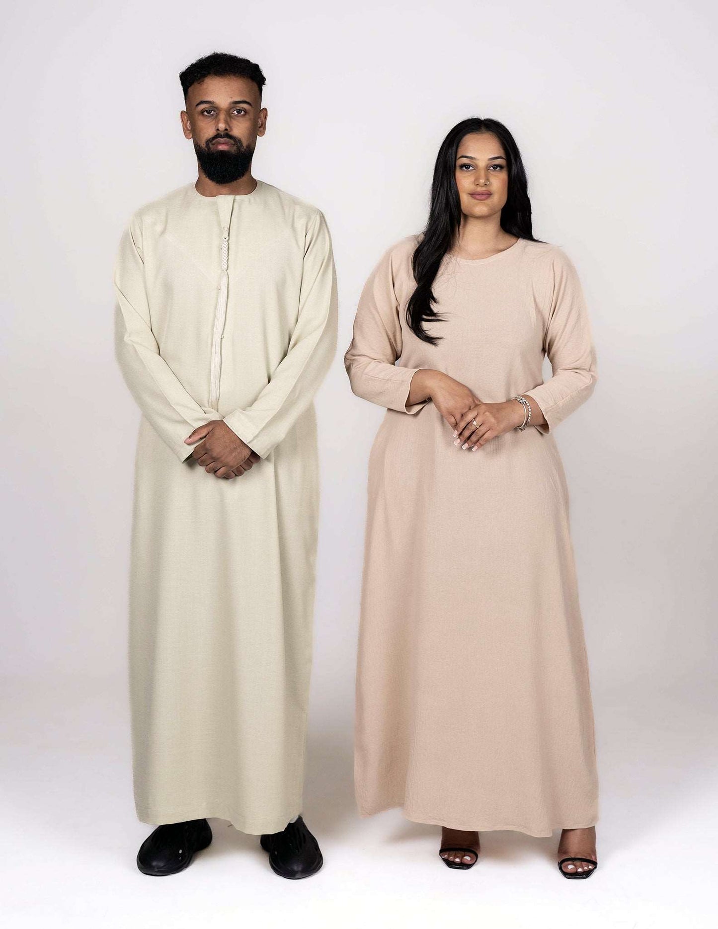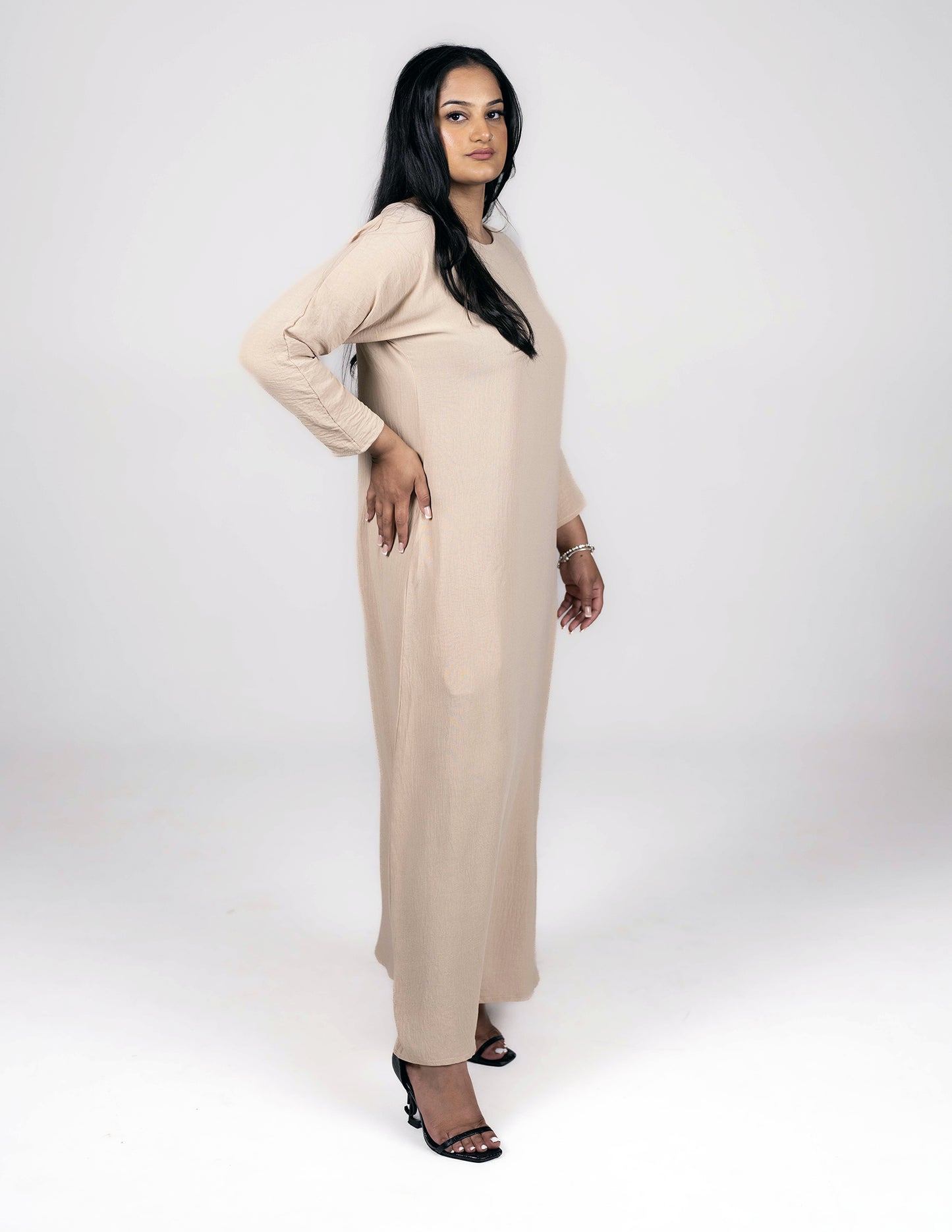 Cut in a modest style, this full length slip dress with pockets either side can be worn under any abaya outer or indeed as a standalone dress. Created in a high quality CY material (linen and polyester blend) giving a light touch, soft feel, and crepe like appearance up close with just enough flexibility to provide comfort and style alike. The dress is perfect for summer, and sure to be a great wardrobe staple.